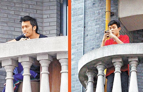 有網(wǎng)友看到陳冠希被拍的照片眼睛一亮,發(fā)現(xiàn)曾和陳冠!扒橥值堋钡闹x霆鋒,之前到上海也下榻同樣的酒店,也愛倚靠在陽臺,只不過陳冠希玩手機(jī)表情迷蒙,謝霆鋒則是抽煙解悶,眼神還有些呆滯。