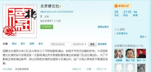 德云社在微博指出:“因德云社演員分成三隊且分別在三個不同的劇場演出,故每天節(jié)目無法隨時改變。今日因有德云社演員自行安排至張一元劇場演出并沒有提前通知演出安排部門及當(dāng)日演出隊。為了不影響正常的演出秩序,所以沒用把該演員安排到今日演出中!