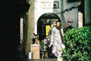 昨天,記者在整個(gè)影視基地轉(zhuǎn)了差不多兩圈,才終于在一個(gè)搭著圍墻的小院子里見到了穿著咖啡色西服的黎明蹤影,而和他搭戲的是一個(gè)79歲的老演員。