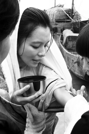 徐若瑄介紹,她扮演的黃蘇英是個美麗善良,而又堅韌不拔的漁家女,看到孩子的同學(xué)不慎掉入水中,她當(dāng)即跳海救人。拍攝當(dāng)天,海邊的天氣十分寒冷,天空下著雨,海風(fēng)很大,導(dǎo)演為她的身體狀況擔(dān)心不已。“我會游泳,但因為要和小演員配合,所以要在海水中一遍遍試戲,很耗體力,后來我的腿都在抽筋了!北M管劇組提前準(zhǔn)備了充足的保暖和安全措施,上岸后的徐若王宣仍凍得瑟瑟發(fā)抖,幾盡虛脫狀態(tài),長時間無法緩解過來!瘘S笑宇