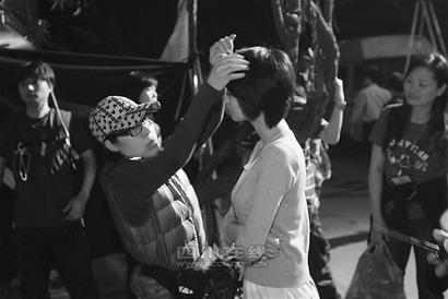 昨日拍攝的戲其實并沒有太多復(fù)雜的內(nèi)容,畫面就是高圓圓和鄭宇成在一條老巷子里面邊走邊說的畫面,不過兩人來來回回走了一晚上,拍攝了一個通宵。為了營造一種雨后的氛圍,劇組人員用水管將整個小巷子澆得濕漉漉的,連墻體都要全部澆濕。住在巷子里的居民都成為了群眾演員,該開店還開店,該打麻將還打麻將,只是不能在巷子里走動而已。因為兩人全部用英語對白,所以每次拍戲前高圓圓都拼命地練英語,特別是她還要背草堂的英文解說詞,難度很大!罢f好英語可能不容易,說熟了總沒問題吧?隨便什么語言,說上1000次,總歸熟練一點!