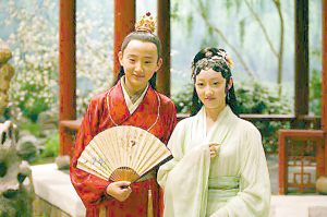 正在拍攝中的新版《紅樓夢(mèng)》劇組,前日趁元旦到廣州樓盤(pán)走穴“撈金”。帶隊(duì)的是制片人李小婉,隨行的是“小寶玉”于小彤、“小黛玉”蔣夢(mèng)婕、“小寶釵”李沁、“大湘云”馬曉燦、“賈璉”王龍華和“柳湘蓮”徐垚。