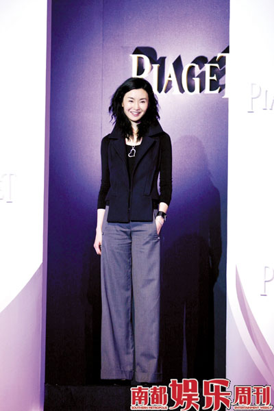 張曼玉以形象大使的身份出席某珠寶品牌活動(dòng),黑色修身上衣搭配煙灰色寬松長(zhǎng)褲子, 簡(jiǎn)潔卻富設(shè)計(jì)感,搭配伯爵的新款珠寶,明麗動(dòng)人。