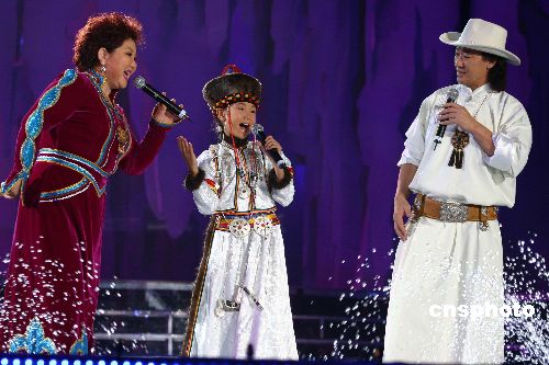 中國國際廣播電臺主持人布仁巴雅爾創(chuàng)作,并由他和妻子烏日娜以及7歲的小侄女英格瑪上臺演唱的《吉祥三寶》清新自然,頗受歡迎。