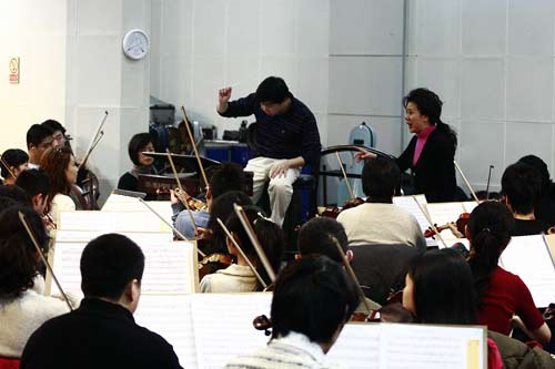 中新網(wǎng)1月23日電 1月22日,由國家大劇院和鳳凰衛(wèi)視聯(lián)合主辦,將于農(nóng)歷大年二十九(1月24日)正式上演的“龍鳳呈祥——全球華人新春音樂盛典”進入倒計時。突如其來的寒潮阻擋不了藝術(shù)家們的熱情,為了能夠在春節(jié)前夕為全球各地的華人同胞奉上一頓豐盛的音樂饕餮盛宴,一大早,中國愛樂樂團的成員們便陸續(xù)拎著樂器箱趕到了排練現(xiàn)場,原生態(tài)超高音歌唱家高保利、被譽為“千面老旦”的京劇藝術(shù)家袁慧琴、有“中國女版郎朗”之稱的鋼琴新秀王羽佳、“當代最杰出及最受歡迎的胡琴全才”姜克美等多位演出名錄上的音樂家也風(fēng)塵仆仆的趕來,藝術(shù)家們齊聚一堂,分別演練了自己為這次全球華人音樂盛典精心挑選的曲目。