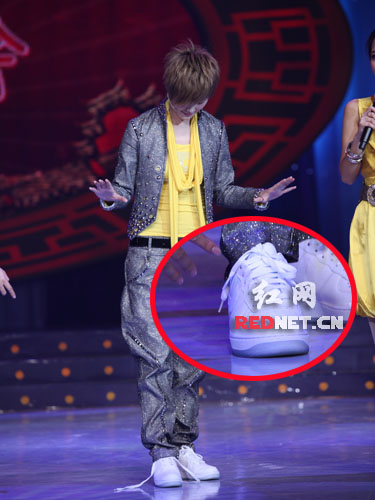 有出彩自然也有不足,采用直播方式進(jìn)行的湖南元宵晚會此次雖然做足了課前工作,但依舊有一些觀眾挑出破綻。作為魔術(shù)新手——近來拜師劉謙的李宇春雖然首次表演贏得不少贊譽(yù),但其緊張的狀態(tài)顯然不如唱歌自信,一上臺就表演通過抖腿將未系上的鞋帶逐漸縮回褲管里,不過卻出現(xiàn)小小的破綻。為表現(xiàn)李宇春的這個(gè)動作,攝像師曾對其鞋給出一個(gè)近景特寫,不料卻拍出李宇春兩只鞋都完整的綁著鞋帶,而原本露在外面的鞋帶也被拍到是從褲管里掉出,顯然是褲子里另有玄機(jī),因此該鏡頭隨后也被立即切換。