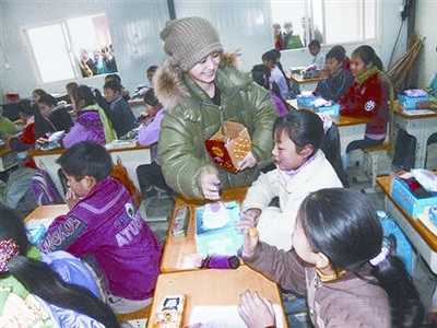 據(jù)報(bào)道,阿嬌探訪的是位于重災(zāi)區(qū)北川的白坭鄉(xiāng)小學(xué)。主管這所小學(xué)的黃校長(zhǎng)介紹說(shuō),阿嬌此次帶來(lái)400多雙嶄新的棉鞋、手套、襪子,保證學(xué)生們每人一份。同時(shí),還有部分七八成新的圍巾、帽子等,總價(jià)值3萬(wàn)多元!八齻児ぷ骱茏屑(xì),從學(xué)前班到6年級(jí),棉鞋、手套、襪子,碼子都合適……” 黃校長(zhǎng)還透露,這些山里農(nóng)村的娃娃,并不像城里同齡小孩一樣對(duì)阿嬌的名氣、過(guò)去有了解,阿嬌的和藹可親得到了孩子們的認(rèn)可。 在一張曝光的圖片中,阿嬌還親切地給一個(gè)婦女背上的女孩子喂桔子。