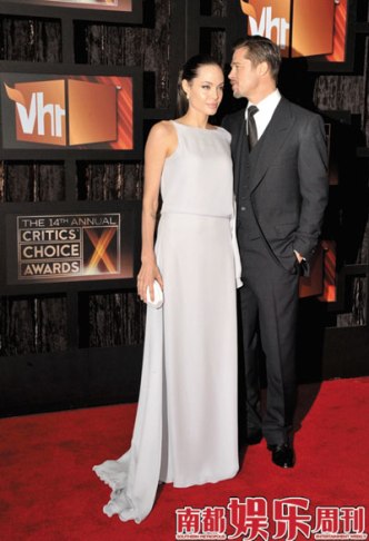 自從兩人生孩子后,感情有增無(wú)減,朱莉的這身白色曳地長(zhǎng)裙如希臘女神般優(yōu)雅,彼特只要站著當(dāng)當(dāng)甘草,兩人就是最般配的一對(duì)。
