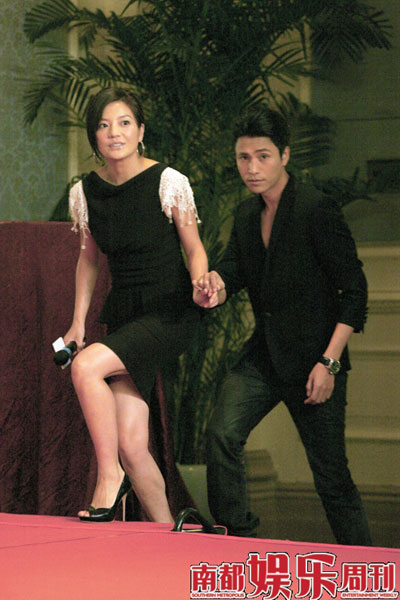 而陳坤也不讓搶鏡的趙薇專美于前,他豪氣派發(fā)數(shù)十封紅包給現(xiàn)場記者當(dāng)作年后開工的開門利是,令到現(xiàn)場一片歡騰。由于開機(jī)當(dāng)天正臨近情人節(jié),記者紛紛要求趙薇和陳坤這對銀幕情侶攜手?jǐn)[拍幾張親密愛人的pose,二人也十分配合,發(fā)布會上也很是投入地“演出”情侶間的拌嘴畫面,陳坤先爆自己不喜歡趙薇這一類型的,因?yàn)椤八腥藲饬恕,趙薇則回嘴自己“其實(shí)一直很有女人味,都是被陳坤亂造謠把名聲搞壞了!庇杏浾哐垡娙绱藲夥眨愠脽岽蜩F地詢問兩人是否有發(fā)展可能,沒料到氣氛一下子降至冰點(diǎn),向來感情生活神秘的陳坤臉色突變,干脆別過頭去,不予回答,最后還是趙薇化解了尷尬場面,她有些嚴(yán)肅地說:“我倆各自都挺多人追的,就還是別在一起給其他人一些機(jī)會吧!