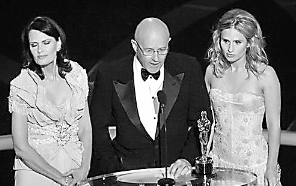 本屆奧斯卡頒獎禮最感動的瞬間有兩個,一是紀(jì)念單元放出保羅·紐曼的照片時,現(xiàn)場唏噓一片。另一次,則是希斯·萊杰憑借“小丑 ”一角拿下最佳男配角獎的時候。當(dāng)然,已經(jīng)逝世的萊杰沒法親身領(lǐng)獎了,他的前女友米歇爾·威廉姆斯與女兒馬蒂爾達(dá)也沒出現(xiàn),代替希斯上臺領(lǐng)獎的,是他那年邁的父母以及姐姐。希斯的姐姐穿起高跟鞋和緊身晚禮服走起路來就稍微有點踉蹌,父親掏出事前準(zhǔn)備好的小紙條念出感謝詞的瞬間,底下的賓客全體起立致敬,向這三位失去親人的好萊塢局外人致敬。這時鏡頭帶到溫斯萊特,她兩眼淚花閃閃……