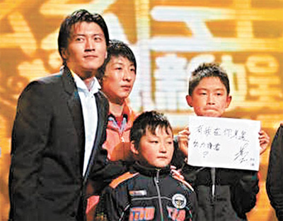 霆鋒多年來(lái)一直資助50名內(nèi)地失學(xué)兒童,前晚大會(huì)安排頒獎(jiǎng)給霆鋒的5名兒童,皆來(lái)自四川地震災(zāi)區(qū)都江堰,且全是由霆鋒資助上學(xué)。近一年來(lái)備受家事困擾的霆鋒,首次見到自己捐助的小孩,頓時(shí)百感交集,他緊緊地抱住這些小朋友,然后眼濕濕哽咽說(shuō):“每當(dāng)我拍戲受傷或者心情低落時(shí),我就會(huì)想自己不能倒下,可能有50個(gè)家庭靠我給他們一頓飯吃。因?yàn)檎J(rèn)識(shí)了他們,我才知道自己有多幸運(yùn),同樣是黃種人,為什么謝霆鋒可以追逐自己的夢(mèng)想,他們卻沒(méi)有這個(gè)機(jī)會(huì)!弊詈笏膭(lì)小朋友說(shuō):“叔叔不怕痛和累,你們也不能放棄!