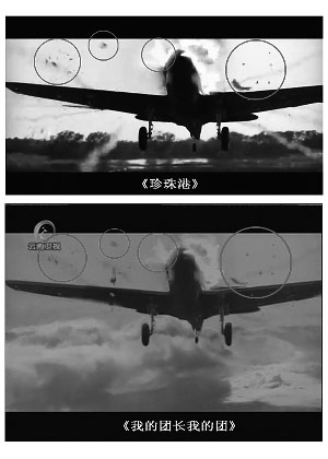 《團(tuán)長》前兩集中描繪孟煩了、迷龍等川軍團(tuán)成員乘坐運(yùn)輸機(jī)前往緬甸時,遭遇日軍襲擊而墜機(jī)的情節(jié),首日播出之后,便有眼尖的觀眾發(fā)現(xiàn)空中飛行的鏡頭和墜機(jī)的鏡頭和《珍珠港》相似。昨日,有觀眾貼出了全部的比較圖,其中十余幀畫面和《珍珠港》如出一轍,甚至連駕駛艙的構(gòu)造和艙內(nèi)細(xì)節(jié)都是一模一樣。觀眾紛紛質(zhì)疑《團(tuán)長》從電影中直接截取了相關(guān)鏡頭。