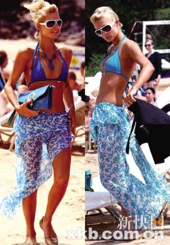 希爾頓夏日裝扮 與新男友暢游海灘甜蜜接吻(組圖)
