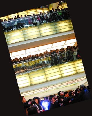 雖然阿嬌的普通話(huà)還是那么糟糕,就連她自己也承認(rèn)不太會(huì)說(shuō)話(huà),有些問(wèn)題仍需經(jīng)紀(jì)人霍汶希代答,但無(wú)可否認(rèn)的是,單就昨日阿嬌的表現(xiàn),媒體一致認(rèn)為她的表達(dá)水平以及應(yīng)對(duì)媒體的公關(guān)技巧大幅提升。提到前一日粉絲接機(jī)的場(chǎng)面,阿嬌直言:“我沒(méi)有想到會(huì)有那么多人支持我,還有媒體記者們。有件事我感到很抱歉,因?yàn)槲业某霈F(xiàn)引發(fā)場(chǎng)面混亂,有的歌迷跌倒了,有的記者掉了手機(jī),我感到非常抱歉!泵鎸(duì)現(xiàn)場(chǎng)幾十人的橙色粉絲團(tuán),阿嬌一度哽咽道:“很開(kāi)心再次來(lái)北京,我很想看奧運(yùn)會(huì),真遺憾錯(cuò)過(guò)了。但我最想念的就是北京的歌迷,真的很感動(dòng)。”眾歌迷聞聽(tīng)此言,有組織地高喊:“阿嬌,我們永遠(yuǎn)支持你!”在粉絲的聲浪中,商場(chǎng)一層到頂層的樓梯和回廊上都擠滿(mǎn)了人群,場(chǎng)面煞是壯觀。
