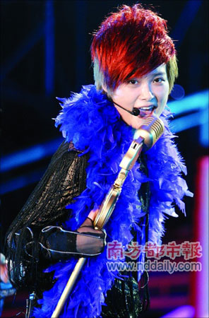 當(dāng)晚李宇春換了八套衣服。沒錯,華麗的、帥氣的造型觀眾都不陌生,可是耍可愛足夠新鮮了吧?五彩繽紛的泡泡滿天飛揚,奶瓶、枕頭是李宇春的道具,動畫片《喜羊羊與灰太狼》和《藍精靈》的主題曲愉悅地響起……尤其是當(dāng)她戴著“熊貓”的帽子,邊彈鋼琴邊唱歌時,歌迷興奮地手舞足蹈,站起來大叫:“春春,你好可愛!”