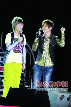林俊杰成為了本場(chǎng)演唱會(huì)的神秘壓軸嘉賓。他不僅帶來了自己的《小酒窩》,還在臺(tái)上和李宇春同場(chǎng)競(jìng)技,表演火爆動(dòng)感的斗舞。林俊杰手拿道具槍連番向四周掃射,氣勢(shì)不遜江湖大哥;李宇春一身運(yùn)動(dòng)裝扮,在蹦床上展示動(dòng)感青春舞姿。二人默契的配合和各自的精彩演繹掀起了演唱會(huì)的高潮。記者 齊帥 實(shí)習(xí)生 史迎利