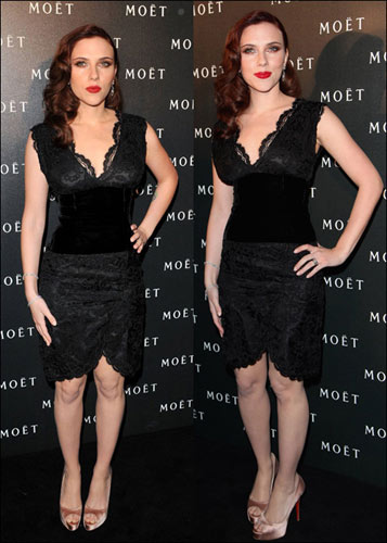 斯嘉麗紅唇雪肌高貴性感 S曲線迷人誘惑(組圖)