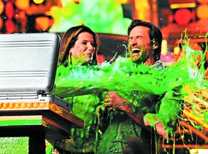 今年的“驚喜”還包括頒獎人休·杰克曼、桑德拉·布洛克被惡搞,打開頒獎箱時,兩人慘遭綠色巖漿噴一身,只能苦笑。此外,上個月在格林美頒獎禮前夕痛毆女友蕾哈娜的克里斯·布朗,本來亦有份提名,及后自動退出;而當(dāng)晚,亦未見有份角逐最受歡迎女歌手獎的蕾哈娜出現(xiàn)。泰漁