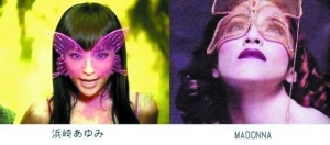 前科:蔡依林在Sony時(shí)代專輯《看我七十二變》的造型被指抄襲日本歌手濱崎步《Fly High》的封面照。兩人的姿勢(shì)幾乎一樣,而且設(shè)計(jì)的創(chuàng)意也非常雷同,只是顏色方面不同而已。當(dāng)時(shí)蔡依林解釋說(shuō),濱崎步比較野性一點(diǎn),自己則是可愛(ài)加成熟,如果給人相似的感覺(jué),那是因?yàn)槌镜钠髣澓秃笾颇芰軓?qiáng),完全不輸給外國(guó)唱片。而到了EMI時(shí)代的《特務(wù)J》中,封面黑色皮衣造型就被歌迷指出是抄襲了電影《魔力女戰(zhàn)士》中奧斯卡影后查理茲·塞隆(右圖上)的女戰(zhàn)士造型。
