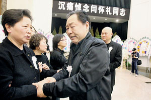告別儀式結(jié)束后,走在最前面的“八戒”馬德華和馮女士抱頭痛哭,遺憾沒(méi)能見(jiàn)到“沙師弟”最后一面。