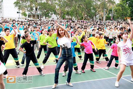 昨日(16日)一早,蔡依林特別前進(jìn)臺北市某小學(xué),帶領(lǐng)小朋友齊跳新歌《愈慢愈美麗》的新舞步。針對日前經(jīng)紀(jì)人透露蔡依林這幾年因為忙著工作,身上帶有不少病痛,下半年可能會讓她好好休息,她低調(diào)表示“一切配合公司安排”。