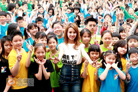 小朋友見到偶像到來,非常興奮,就連家長和老師也不分老小忙著拿起相機拍照,全校為之瘋狂,讓蔡依林在活動結束后,差點離不開校園。