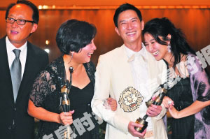 張家輝隨后在接受著名主持人查小欣的訪問時(shí)表示,以后不會(huì)再帶著妻子參與奪獎(jiǎng),不過仍很甜蜜地說,“其實(shí)頒獎(jiǎng)前她比我還緊張,宣布時(shí),她使勁握著我的手,險(xiǎn)些把我的手都握斷了,得知獲獎(jiǎng)后我就和她來了一個(gè)長(zhǎng)長(zhǎng)的擁抱。”
