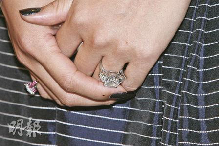 據(jù)香港《明報》報道,章子怡專程赴港參加代言活動,她穿著價值7000元(港幣,下同)的吊帶衫裙,左手無名指繼續(xù)戴上她最愛的10克拉巨型鉆戒,右手尾指亦戴上另一款巨型鉆戒,再配以鉆石手鏈大曬幸福貴氣。貴為國際影星的她,全程戴上太陽眼鏡,由她現(xiàn)身到訪問結束離開,只有10分鐘時間,而她身邊除經(jīng)理人、助手外,還有10名保安護駕,盡顯大明星風范。活動于中午舉行適值午飯時間,吸引好多市民駐足觀看。