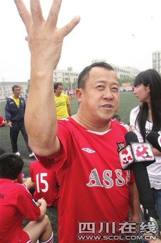 昨日下午,位于地震重災(zāi)區(qū)的什邡中學(xué)體育場(chǎng)熱鬧非凡。一場(chǎng)由譚詠麟率領(lǐng)的香港明星足球隊(duì),與孫楠率領(lǐng)的夢(mèng)舟明星足球隊(duì)之間的足球賽正式開(kāi)鑼。曾志偉、成奎安、羅家英、陳百祥、何家勁、洪金寶之子洪天明以及白巖松、景崗山,羽泉、文章、吳京、黃格選、陶偉等30多個(gè)影視歌明星輪番上陣,爭(zhēng)搶激烈。譚詠麟、曾志偉帶頭當(dāng)老頑童玩得盡興,明星們還在比賽間隙穿插文藝表演,讓觀眾無(wú)比激動(dòng)。