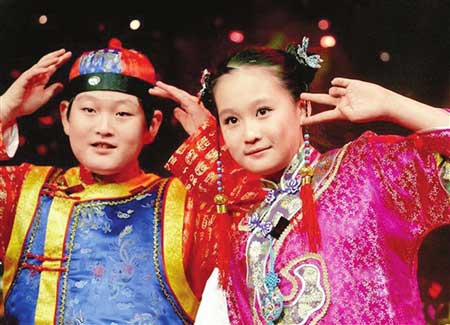 由沈陽籍歌手火風(fēng)、汪正正領(lǐng)銜演唱的開場(chǎng)歌舞《大拜年》,以火爆熱鬧掀開了遼視春晚的蓋頭,節(jié)目中一對(duì)童聲演唱的表演者正是趙本山的一對(duì)龍鳳胎寶貝牛牛和妞妞。屬牛的牛牛和妞妞今年恰逢第一個(gè)本命年,這次表演對(duì)他們來說也是兄妹倆首次聯(lián)手的舞臺(tái)處女秀,因此兩個(gè)小家伙煞是認(rèn)真,無論是彩排還是正式表演,舉手投足都像模像樣,看起來是深得父親的真?zhèn)鳌?