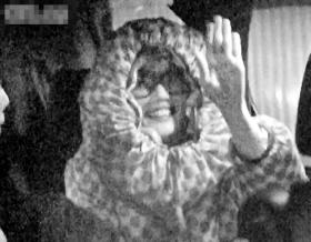記者當(dāng)晚途經(jīng)灣仔春園街明星食肆“佳文魚生”,當(dāng)時(shí)餐廳的卷簾門已經(jīng)拉下一半,突然一輛七人車在餐廳門口停下,只見穿著灰色衣服的何韻詩下車閃身進(jìn)入店內(nèi),隨后還有何爸爸及何媽媽。當(dāng)記者試圖尋找何韻詩一家的下落時(shí),立即有工作人員阻止記者拍照,并將卷簾門拉低。大約3個(gè)小時(shí)后,一名男子率先離開餐廳,緊隨其后的是一名用紅色方格頭巾遮住頭部的神秘人,旁邊則是容祖兒助手,而在門口也停著容祖兒的七人車,神秘人的身份一猜便知。容祖兒步出門口時(shí)發(fā)現(xiàn)記者,情急中竟像沒頭蒼蠅一樣撞向卷簾門,痛得大叫“哎呀”。