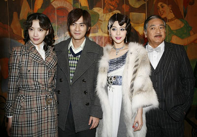 范冰冰擔(dān)任制片人的第二部電視劇《金大班的最后一夜》正在上海熱拍,劇組昨日在楊浦區(qū)的一棟洋房內(nèi)組織媒體探班,范冰冰偕男主角周渝民、方中信、黃少祺、秦沛等以劇中造型出現(xiàn)在媒體面前。在采訪中,老板兼演員的范冰冰以及首次出演年代戲的仔仔周渝民成為媒體關(guān)注的焦點,兩人表現(xiàn)出“相見恨晚”的樣子,難怪仔仔最后被問到是否會與大S復(fù)和的消息,仔仔很肯定地說:“沒有”。