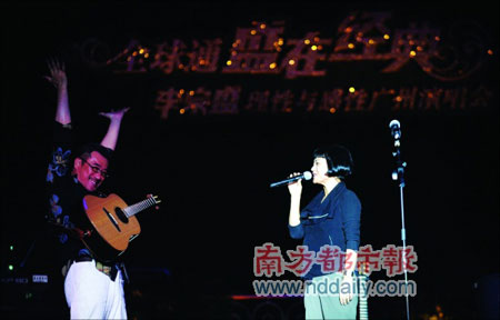 張艾嘉的出現(xiàn)令觀眾極為興奮。這個被李宗盛稱為“大姐”的女人一上臺就調侃李宗盛:“在歌壇里,小李是我的最愛,那你的最愛是誰?”讓李宗盛無言以對。她唱起了《我這樣愛你到底對不對》、《因為寂寞》,還不忘輕松地在舞臺上表現(xiàn)兩個人的友情:“你們看過小李演的電影沒有?他演的多數(shù)是喜劇,悲劇也能演成喜劇,每次都演我的丈夫或者男朋友,唉,我真的很不幸……”此外她還逼問:“你的歌都很浪漫,不知道你是不是一個浪漫的男人?”李宗盛據(jù)實以答:“把渴望而不可得的寫入歌中,我的實際人生很沉悶的。”張艾嘉最后很奔放地勸說他:“再找個好點的,再生個妞!庇浾 齊帥 攝影 馬強