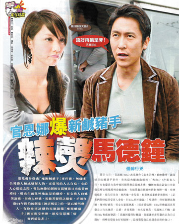 官恩娜禍從口出,因?yàn)橐幌挾鴮ⅠR德鐘、吳卓羲等男藝人拖入“咸豬手事件”,惹來當(dāng)事人和無線高層的不滿(見昨日B1版)。為此,她只好主動(dòng)致電TVB高層樂易玲作解釋,并公開向無辜的男藝人道歉。