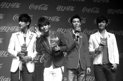作為目前最受歡迎的青春偶像組合,“飛輪!4位帥哥成員吳尊、炎亞綸、汪東城和辰亦儒齊集上海,推出今年可口可樂全新廣告。由于早有“飛輪!背蓡T不和的傳聞,吳尊和“大哥”汪東城在發(fā)布會上更是“明爭暗斗”,但記者一提到前輩F4,四人均立刻不屑道,“他們只是機(jī)遇比較好”。