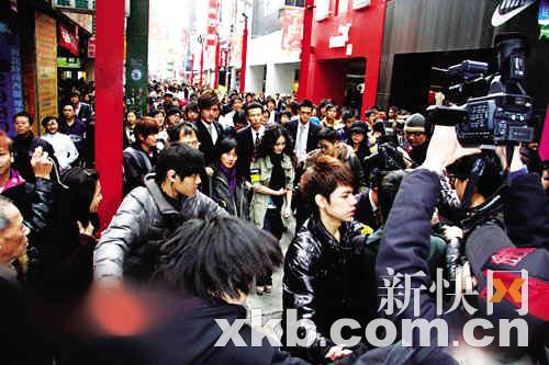 由于大批圍觀人群逼爆現(xiàn)場(chǎng),所以大會(huì)除了用鐵欄桿隔出3米的距離讓阿嬌受訪,還出動(dòng)十名保安及三十多位工作人員“護(hù)嬌”,更筑起三道人墻前后將阿嬌包圍。阿嬌不斷強(qiáng)調(diào)臺(tái)灣的Fans讓她備感溫暖,并向Fans溫情“喊話”,感謝他們的不離不棄,“希望大家逆境自強(qiáng)、永不妥協(xié),困難時(shí)不要放棄希望。你們(歌迷)的一舉一動(dòng)都給我很大力量,我唯一可以回報(bào)的就是堅(jiān)強(qiáng)面對(duì)!彪S后她在巨型布景板上寫(xiě)下“堅(jiān)強(qiáng)、努力”兩詞。阿嬌說(shuō),兩個(gè)月前她曾悄悄和阿Sa到臺(tái)灣度假,還透露早些年因有人挑撥離間,導(dǎo)致自己和阿Sa沒(méi)那么親近,兩人一起來(lái)臺(tái)灣后,心結(jié)全消。
