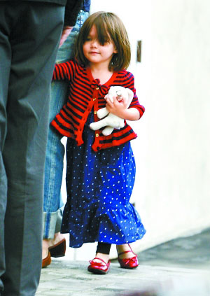 昨天,加州圣塔莫尼卡,阿湯嫂凱蒂帶著女兒蘇瑞和貝克漢姆的兩位小公子一起到兒童藝術中心觀看展覽。據(jù)悉,凱蒂目前正在設計童裝,進軍時尚領域,靈感來自于她和阿湯哥的女兒蘇瑞。凱蒂說她與朋友從一年前就開始一起工作,畫草圖買樣衣。