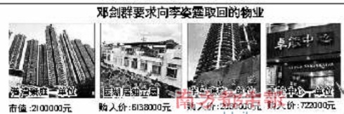 另外,有報(bào)道指,鄧劍群在向法院交待這些年交與李姿霆的多處物業(yè)時(shí)稱,當(dāng)初以李姿霆的名義購(gòu)買物業(yè)只是為怕兩人戀情會(huì)因他登記成為業(yè)主而被揭發(fā),但并沒有打算將物業(yè)以饋贈(zèng)形式轉(zhuǎn)讓給李姿霆,如關(guān)系終結(jié),她持有的業(yè)權(quán)將悉數(shù)歸還給鄧劍群。