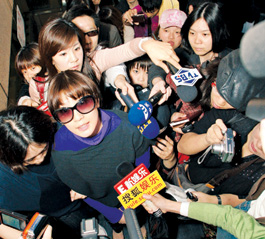 賈靜雯昨天乘坐最早一班從臺北桃園機(jī)場直航浦東的飛機(jī)于上午11點(diǎn)準(zhǔn)時(shí)抵滬,大批上海、臺灣的媒體早已在機(jī)場等候。隨著旅客漸漸走出,卻遲遲未見賈靜雯的身影,一位空姐一語道破:“我剛才看到她往那邊的VIP通道走了!鳖D時(shí)引起媒體的緊張,怕賈靜雯再度上演美國酒店和媒體“躲貓貓”的戲法。
