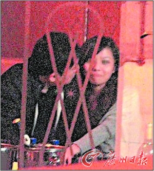 5月8日晚上9時,呂方帶領三名男友人,往灣仔區(qū)一間只招待熟客的高級卡拉OK消遣,眾人來到VIP房,10分鐘后兩名年輕貌美,年約20歲的少女入內(nèi),呂方對一名眼睛大大下巴尖尖,笑容極甜、貌似蔡少芬的小姐特別喜歡,兩人邊唱歌邊喝酒,呂方還興奮地叫了一支2000元的威士忌跟小姐慢慢喝。酒過三巡,呂方與美女愈坐愈近,更唱情歌討好美女,又不時跟女方耳語(見右圖)?窆嗤考、香檳及啤酒后,跟小姐愈玩愈癲的呂方,竟突然抱起小姐又攬又親,難得小姐非常樂意,任他熊抱兼吻面,呂方更蒙起雙眼,陶醉得久久不能張開。