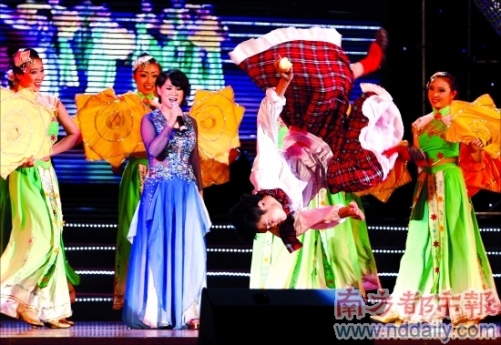 孫麗榮和蘇小龍的老太太倒追小帥哥的段子也笑料百出,孫麗榮扭曲走步法、跳大神和背地名堪稱一絕,追帥哥更是追到了舞臺下,最后擁抱了某位男觀眾才心滿意足上臺。本報觀劇團特別填寫了調(diào)查報告,報告顯示有47%的觀眾認(rèn)為小沈陽的師兄弟“很出色,不比小沈陽差,只是缺少機會!