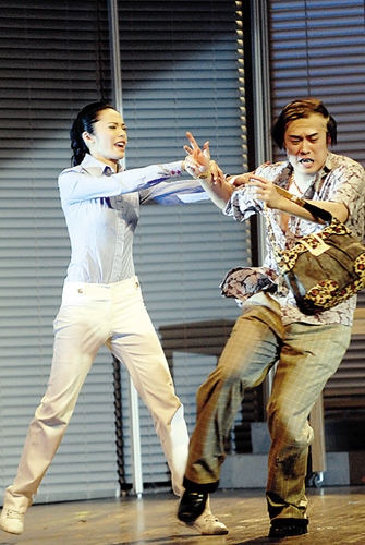 對策:在一年一度的公司評估會上,拉拉認清事實,選擇與玫瑰正面PK。她運用SWOT分析法[SWOT是一種分析方法,用來確定企業(yè)或自身的競爭優(yōu)勢(strength)、競爭劣勢(weakness)、機會(opportunity)和威脅(threat),從而采取的具體戰(zhàn)略與策略。]得到上司的信任,最后把玫瑰趕出公司。話劇通過歌舞的形式體現(xiàn)了二人的明爭暗斗。