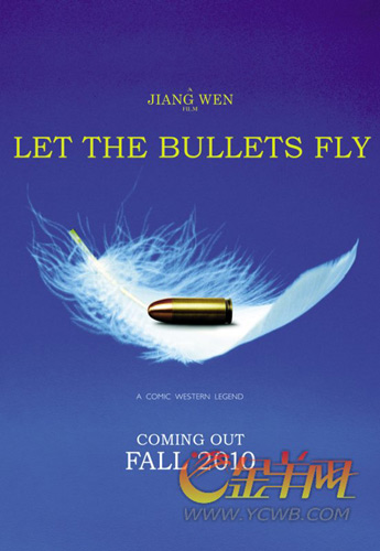 繼《花木蘭》、《狼災(zāi)記》等大片相繼出擊后, 姜文的新片海報(bào)也在戛納亮相。這幅畫面簡潔卻極具沖擊力的海報(bào),因?yàn)槭侨⑽亩恢北恢袊浾摺昂雎浴,但就吸引了眾多海外片商駐足。海報(bào)主色調(diào)為飽滿的藍(lán)色,畫面的主體是一顆飛行的子彈和一根飄動(dòng)的潔白羽毛,子彈下方的三個(gè)簡單英文單詞則點(diǎn)出了三大商業(yè)元素:喜劇、西部、傳奇,英文片名為《Let the bullets fly》(直譯:讓子彈飛吧)———這些都透露出該片會(huì)是一部與姜文此前作品完全不同的商業(yè)大片。