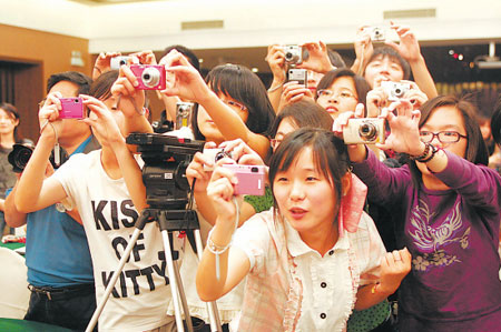 一分鐘內(nèi),包裹著劉謙的人群,像只巨大的毛線(xiàn)團(tuán),逐漸消失在宴會(huì)廳側(cè)門(mén)。主席臺(tái)上,幾位“粉絲”有幸搶到了劉謙桌上的涂鴉紙,上書(shū)“山外青山樓外樓”,再問(wèn)發(fā)布會(huì)的內(nèi)容,他們?cè)缫雅d奮地答非所問(wèn):“他收了我們送的粽子!