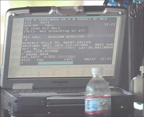 洛杉磯當(dāng)?shù)貢r間26日凌晨24時21分,洛杉磯消防隊的護理人員突然接到杰克遜身邊的工作人員從杰克遜位于洛杉磯的家中打來的急救電話,聲稱:“一名50歲的男性沒有了呼吸!奔本热藛T8分鐘后抵達時才發(fā)現(xiàn)出事的是“搖滾天王”邁克爾·杰克遜,而當(dāng)時他已經(jīng)沒了呼吸,也沒有了脈搏。醫(yī)務(wù)人員迅速將他抬上救護車,緊急送往加州大學(xué)洛杉磯分校醫(yī)療中心。