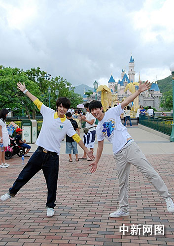 吳建飛與向鼎此前現(xiàn)身香港迪斯尼樂(lè)園,完成了宣傳片的拍攝。雖然已不是第一次來(lái)到香港迪斯尼樂(lè)園,但兩位好男兒依然對(duì)樂(lè)園內(nèi)的一景一物表現(xiàn)出強(qiáng)烈的興趣,十分享受童話世界般的夢(mèng)幻氛圍。拍攝中,他們?cè)跇?lè)園的景觀前擺出可愛(ài)姿勢(shì),興奮地體驗(yàn)“旋轉(zhuǎn)飛車”,還興致勃勃地在紀(jì)念品專賣店里挑選有史迪仔圖案的T恤,流露出濃厚的童心。