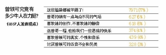 同樣在開心網(wǎng)上,針對“曾軼可身后究竟有多少牛人在力挺?”的帖子,有10357人(截至昨日)投票表態(tài),結(jié)果有7971人選擇了“這些腦袋都被羊踢了”記者 齊帥 實習生 戴曼曼
