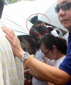 連日來“藏身”朱宅的華仔,在朱父出殯之日終“破功”,雖然他“被逼”出來面對眾人,但始終嚴守最后一道防線,朱家親友采用“傘遮人”政策(全體打開雨傘),讓華仔混在親友當(dāng)中,并由一名高大印裔保鏢擋在其身邊,一直用手壓低華仔的頭,讓他由頭到尾“沒臉見人”。