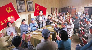導(dǎo)演兼主演的唐國強信心十足地說:“最近《解放》被拿來和《建國大業(yè)》相比,但是我覺得《建國大業(yè)》沒法和我們比!碑(dāng)記者提及《建國大業(yè)》里明星多時,唐國強說:“他們有的,我們也有!我們這部劇匯集了劉勁(飾周恩來)、王伍福(飾朱德)、郭連文(飾劉少奇)、姚居德(飾彭德懷)、張再新(飾劉伯承)、馬曉偉(飾蔣介石)、于小慧(飾宋美齡)……”唐國強強調(diào)說:“他們有172個明星,我們有473個歷史人物,數(shù)量和分量上可都不差哦!”