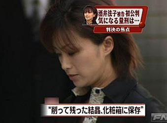 中新網(wǎng)10月26日電 被控違反《興奮劑取締法》持有、使用毒品的日本女星酒井法子(38歲,本名高相法子)首次公審26日在東京地方法院(審判長:村山浩昭)進行。酒井在法庭上對起訴內(nèi)容供認不諱。檢方求刑1年零6個月,判決計劃將于11月9日下達。